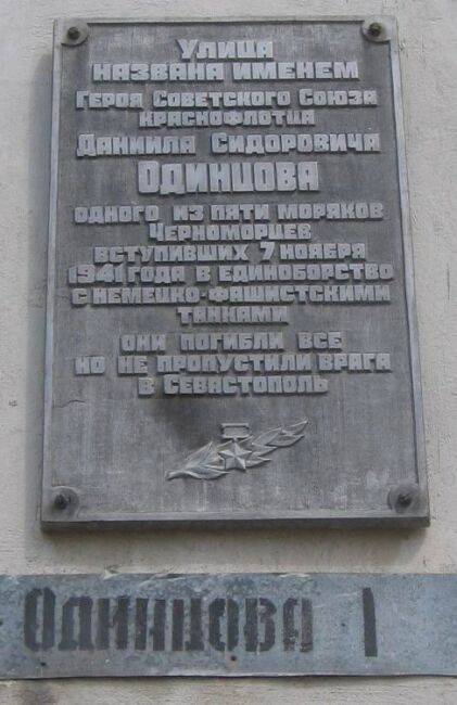 Стрелок 18-го отдельного батальона морской пехоты (Береговая оборона Черноморского флота) краснофлотец Даниил Одинцов при обороне Севастополя 7 ноября 1941 года в составе группы бойцов во главе с политруком Н.Д. Фильченковым в районе села Дуванкой (ныне село Верхнесадовое администрации города-героя Севастополя) отражал атаки противника, пытавшегося через долину выйти к Севастополю. В критический момент боя обвязался гранатами и бросился под танк противника. Погиб, не дав врагу возможности пройти через занимаемый рубеж. Группа уничтожила десять танков, враг был остановлен.