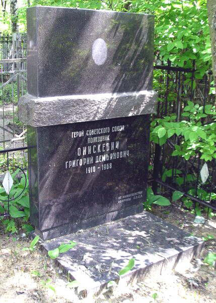 Онискевич Григорий Демьянович – заместитель командира эскадрильи 164-го истребительного авиационного полка 295-й истребительной авиационной дивизии 9-го смешанного авиационного корпуса 17-й воздушной армии 3-го Украинского фронта, старший лейтенант.