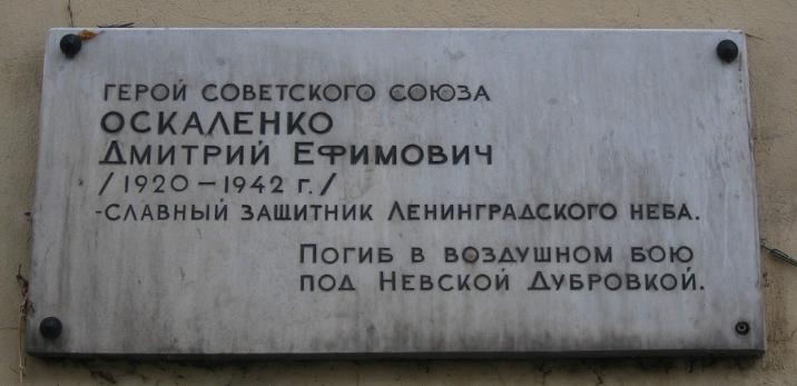 Оскаленко Дмитрий Ефимович – командир звена 26-го истребительного авиационного полка (7-й истребительный авиационный корпус, Ленинградская армия ПВО, Войска ПВО территории страны), старший лейтенант.