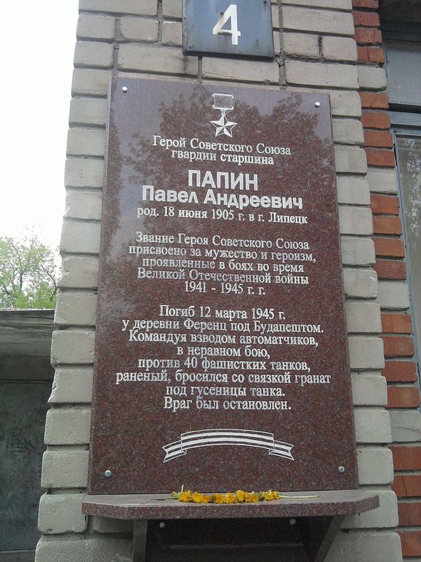 Папин Павел Андреевич - командир взвода автоматчиков 10-го гвардейского воздушно-десантного ордена Богдана Хмельницкого полка (3-я гвардейская Уманская Краснознамённая ордена Суворова 2-й степени воздушно-десантная дивизия, 35-й гвардейский Прутский стрелковый корпус, 27-я армия, 3-й Украинский фронт), гвардии старшина.
