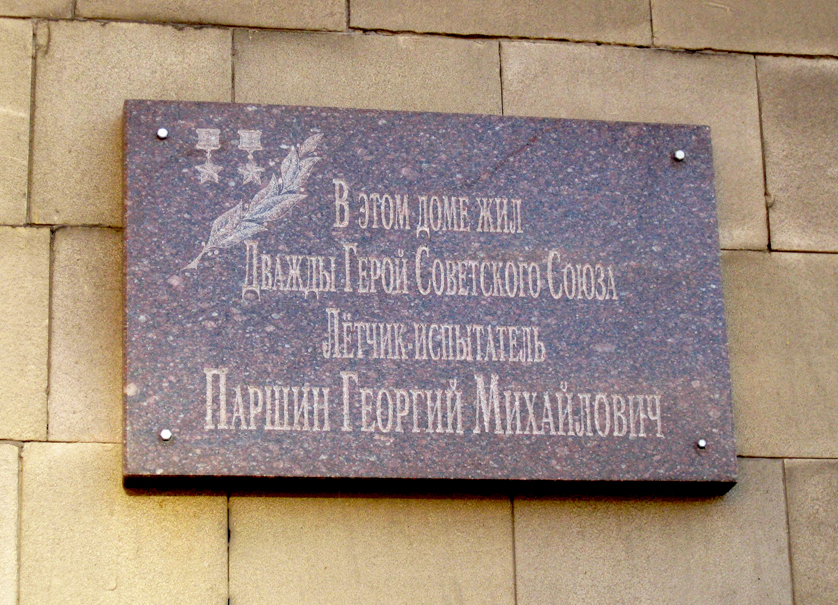 Указом Президиума Верховного Совета СССР от 19 апреля 1945 года командир 943-го штурмового авиационного полка майор Паршин Георгий Михайлович награждён второй медалью «Золотая Звезда» (№40).