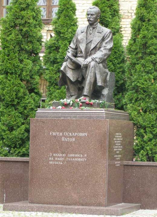 В июле 1944 года Е.О. Патон вернулся из эвакуации в Киев и возглавил восстановление Института электросварки. В послевоенные годы много времени уделял совершенствованию процесса автоматизации сварки. В 1950 году он руководил проектированием и строительством первого цельнометаллического 1542-метрового моста через Днепр в Киеве, который был создан без единой заклепки. В последние годы жизни занимался исследованием сварки в углекислом газе. Всего по проектам выдающегося ученого построено свыше 50 клепаных и свыше 100 сварных металлических мостов, а если учесть построенные по созданным им типовым проектам, этот счет пойдет на многие сотни. Большинство из мостов Патона, уцелевших в годы войны, безаварийно служат людям и по сей день.