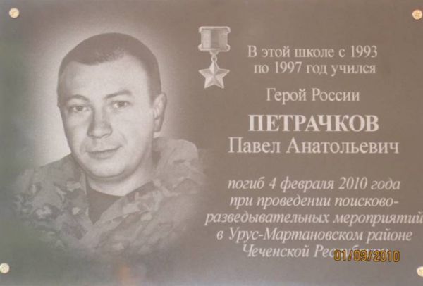 На здании школы в селе Покрово-Берёзовка, где в 1993-1997 годах учился П.А.Петрачков, установлена мемориальная доска.