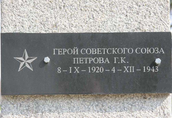 Участвуя в Керченско-Эльтигенской десантной операции (31 октября - 11 декабря 1943 года), медицинская сестра 386-го отдельного батальона морской пехоты (Новороссийская ВМБ, Черноморский флот) кандидат в члены ВКП(б) главстаршина Петрова Г.К. в составе батальона 1 ноября 1943 года под огнём врага высадилась на Крымское побережье в районе посёлка Эльтиген (ныне Героевское Крымской области Украины). После высадки, когда на правом фланге морским пехотинцам капитана Белякова П.Л. путь преградили колючая проволока и минное поле, и цепь морских пехотинцев залегла, главстаршина Петрова Г.К. бесстрашно бросилась вперед, увлекая за собой товарищей. Затем, за одну только первую ночь, бесстрашная медсестра вынесла с поля боя свыше двадцати тяжелораненых воинов.