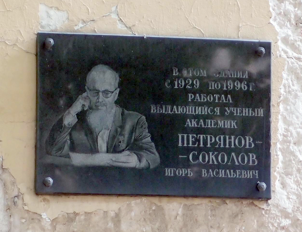 Петрянов-Соколов Игорь Васильевич - академик, заведующий дабраторией Физико-химического института имени Л.Я. Карпова Академии наук СССР, г. Москва.