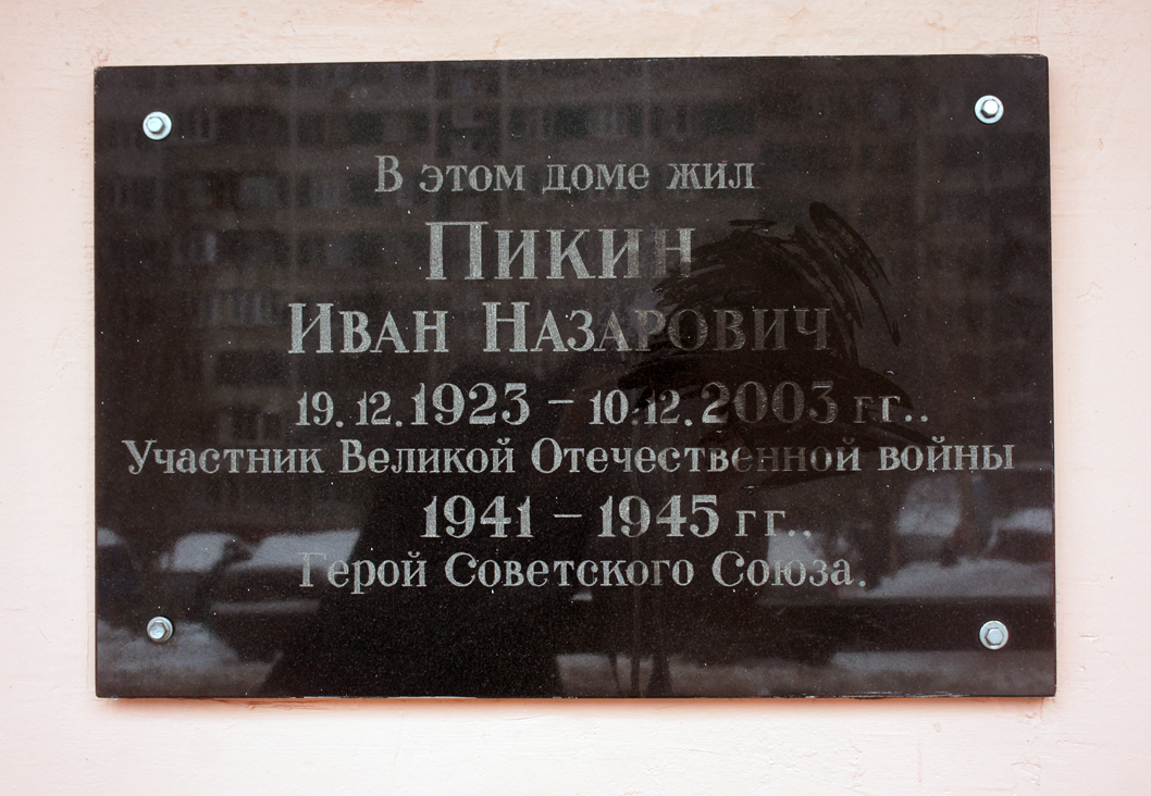 Командир пулемётного расчёта 931-го стрелкового полка (240-я стрелковая дивизия, 38-я армия, Воронежский фронт) комсомолец младший сержант Пикин И.Н. в ночь на 30 сентября 1943 года первым в подразделении преодолел реку Днепр в районе села Лютеж Вышгородского района Киевской области, участвовал в отражении 8-и вражеских контратак, удерживая захваченный плацдарм.
