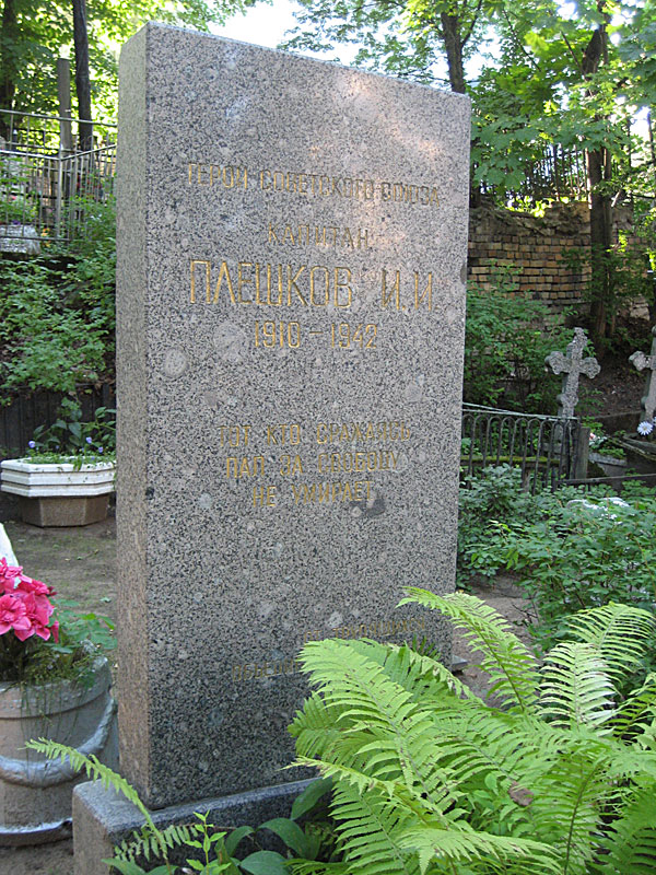 Указом Президиума Верховного Совета СССР от 21 марта 1940 года за образцовое выполнение боевых заданий командования на фронте борьбы с финской белогвардейщиной и проявленные при этом доблесть и мужество младшему лейтенанту Плешкову Ивану Ивановичу присвоено звание Героя Советского Союза с вручением ордена Ленина и медали "Золотая Звезда" (N 459).