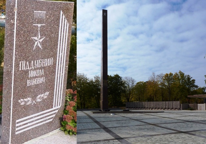 Надпись на постаменте гласит: "Вечная слава Героям Советского Союза". Ниже высечены имена: "Гвардии сержанты Н.И. Поддубный, М.М. Абдулманапов; гвардии рядовые: П.В. Велигин, И.Т. Тимошенко, М.А. Задорожный, Г.Н. Захарченко, П.А. Иванов, А.Ф. Симоненко". Восемь из девяти героев. Девятому — В.А. Ершову — посчастливилось выжить, хоть и был он расстрелян вместе со всеми...
