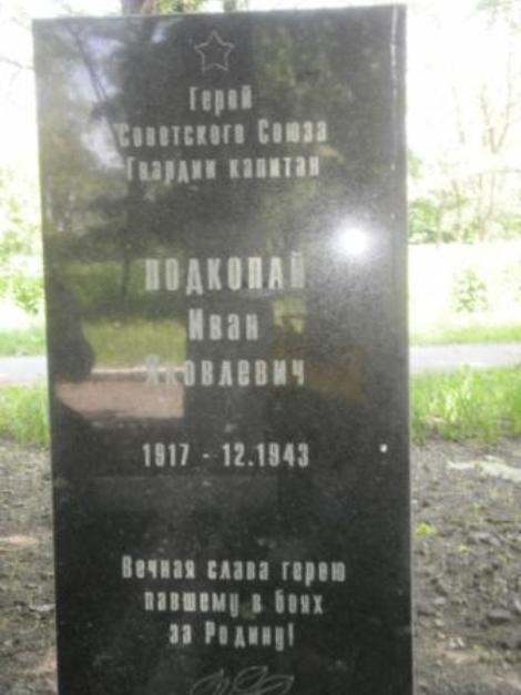 Гвардии капитан И.Я. Подкопай погиб в бою 10 декабря 1943 года. Похоронен в братской могиле в посёлке городского типа Новая Прага Александрийского района Кировоградской области Украины.