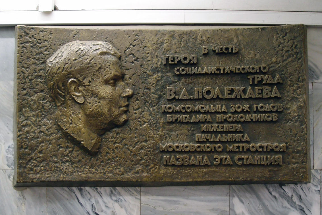 Открытая в 1972 году станция московского метро "Полежаевская" была названа в честь В.Д. Полежаева. Он единственный метростроевец, именем которого названа станция московского метро. На одном из вестибюлей данной станции ему установлена мемориальная доска.