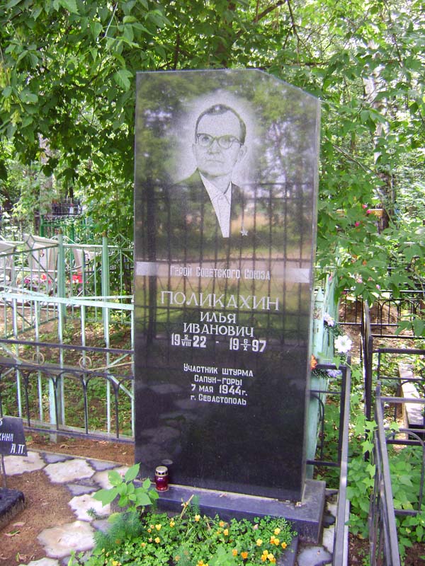 И.И.Поликахин изображён на диораме «Штурм Сапун-горы» в момент атаки вражеского блиндажа.