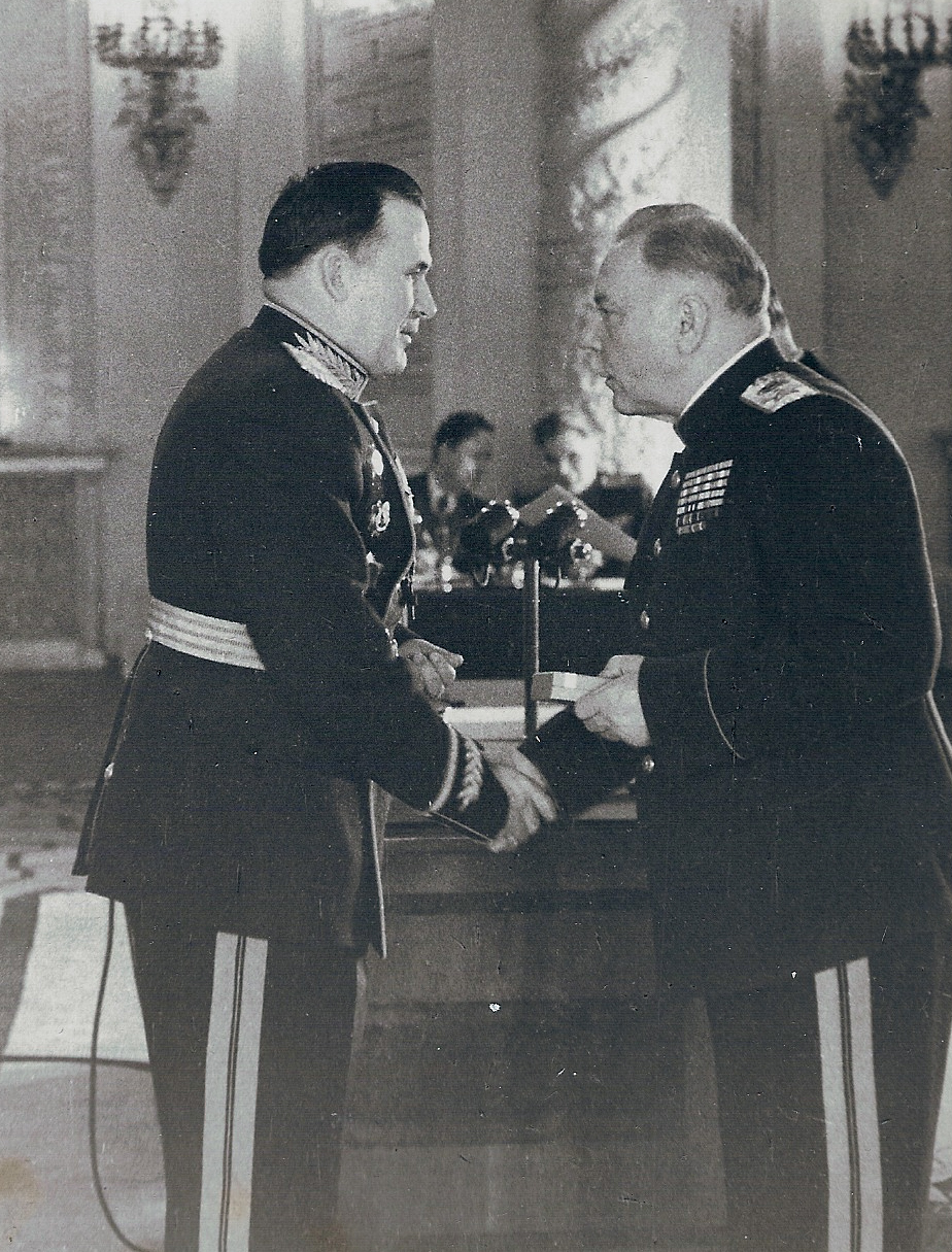 Воинские звания: генерал-майор артиллерии (29.01.1943), генерал-лейтенант артиллерии (27.06.1945), генерал-полковник артиллерии (18.02.1958).