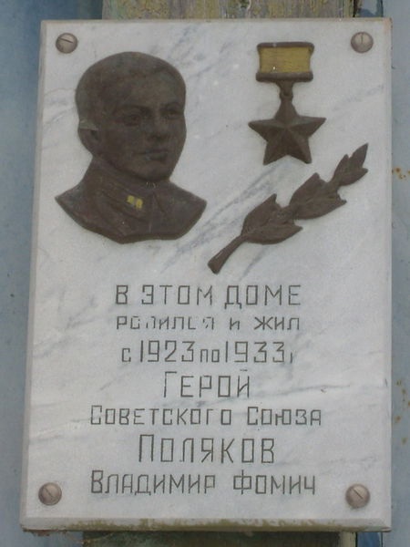 На доме в селе Макарово, где родился и жил В.Ф.Поляков, установлена мемориальная доска.