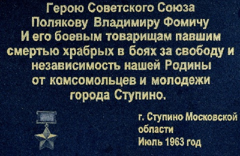 В городе Ступино именем В.Ф.Полякова назван сквер. В сквере установлен бюст Героя.