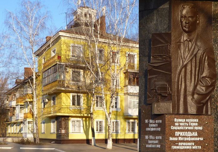 Установлена на доме, котором жил И.М.Приходько в городе Кременчуг Полтавской области (Украина). Автор фото - Valya 66, 17.03.2010.