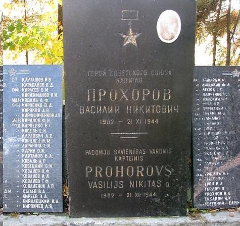 Капитан В.Н.Прохоров похоронен на воинском братском кладбище в поселке Пампали, волость Пампалю, Салдуский район, Латвия. На могиле установлен памятник.