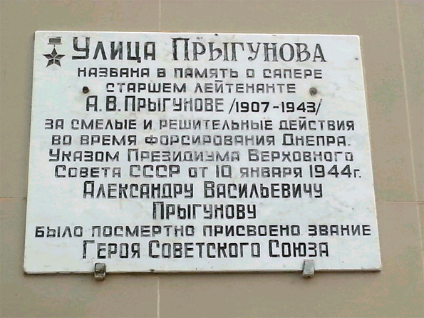 Командир саперной роты 28-го отдельного штурмового инженерно-саперного батальона (6-я штурмовая инженерно-саперная бригада, 40-я армия, Воронежский фронт) кандидат в члены ВКП(б) старший лейтенант Александр Прыгунов в конце сентября 1943 года при форсировании Днепра в районе Великий Букрин Мироновского района Киевской области Украины успешно обеспечил переправу личного состава, артиллерии и боеприпасов наступающих частей. Несмотря на то что противник вывел из строя большую часть переправочных средств, на оставшемся пароме в ночь на 28 сентября 1943 года было переправлено свыше 500 бойцов, 17 артиллерийских орудий с расчётами, 117 ящиков боеприпасов, другая боевая техника и имущество.
