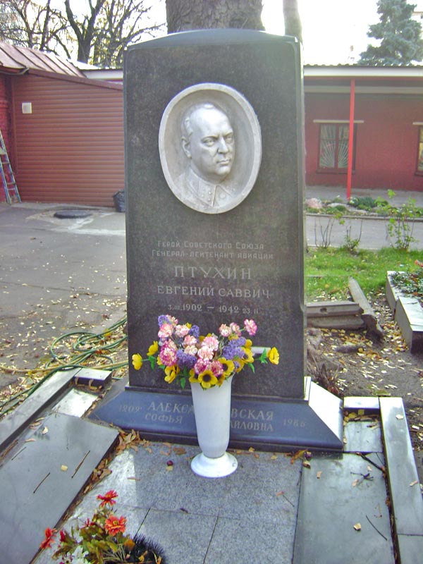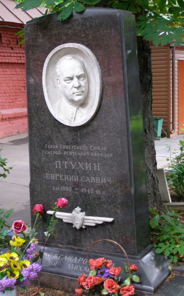 Место захоронения неизвестно, но в 1950-е годы вдова Героя установила в Москве на Новодевичьем кладбище кенотаф - памятный знак - обозначив символическую могилу генерал-лейтенанта авиации Е.С. Птухина.