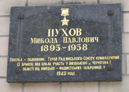 За умелое управление войсками армии при форсировании pек Десна, Днепр, Припять и проявленные при этом мужество и отвагу Указом Президиума Верховного Совета СССР от 16 октября 1943 года генерал-лейтенанту Пухову Николаю Павловичу присвоено звание Героя Советского Союза с вручением ордена Ленина и медали "Золотая Звезда".