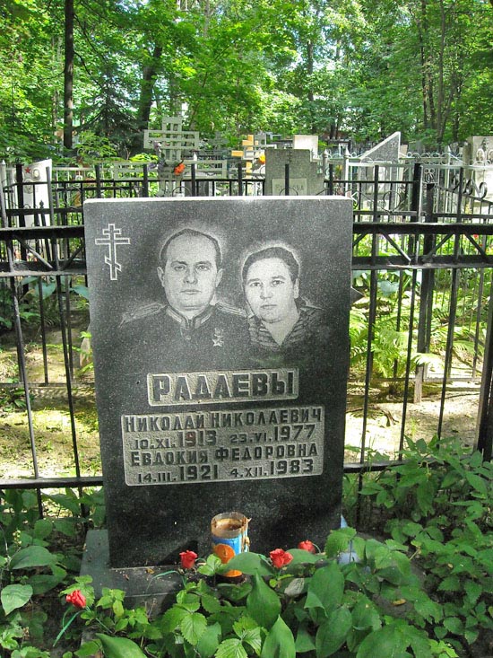 После войны отважный комполка продолжал службу в армии. Окончил Военную академию имени М.В. Фрунзе. С 1961 года полковник Радаев Н.Н. - в запасе. Жил в городе Горький (ныне – Нижний Новгород). Скончался 23 июня 1977 года. Похоронен на Бугровском кладбище в Нижнем Новгороде.
