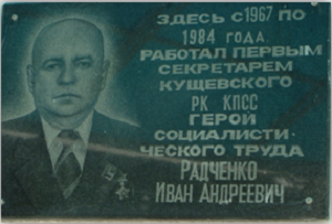 И.А.Радченко возглавлял Кущёвский район в должности первого секретаря районного комитета партии да 1984 года.