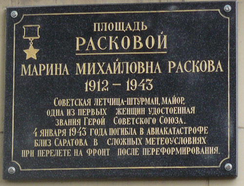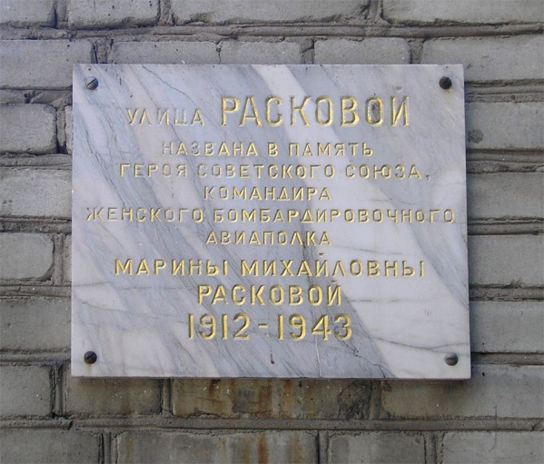 Раскова (до 1929 года - Малинина) Марина Михайловна - советская лётчица-штурман, капитан; одна из первых женщин, удостоенная звания Герой Советского Союза.