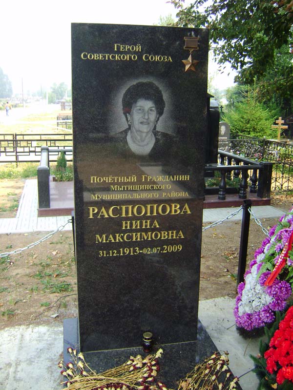 Распопова Нина Максимовна – командир звена 46-го гвардейского ночного бомбардировочного авиационного полка 325-й ночной бомбардировочной авиационной дивизии 4-й воздушной армии 2-го Белорусского фронта, гвардии старший лейтенант.