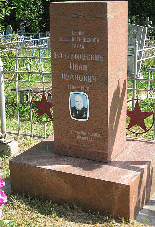 После смерти председателя по ходатайству колхозников колхоз был переименован в колхоз имени И.И.Разумовского.