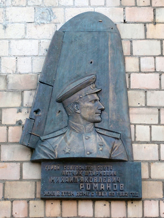 Романов Михаил Яковлевич - командир 3-й эскадрильи 565-го штурмового авиационного Станиславского полка (224-я штурмовая авиационная Жмеринская Краснознаменная дивизия, 8-й штурмовой авиационный корпус, 8-я воздушная армия, 4-й Украинский фронт), старший лейтенант.