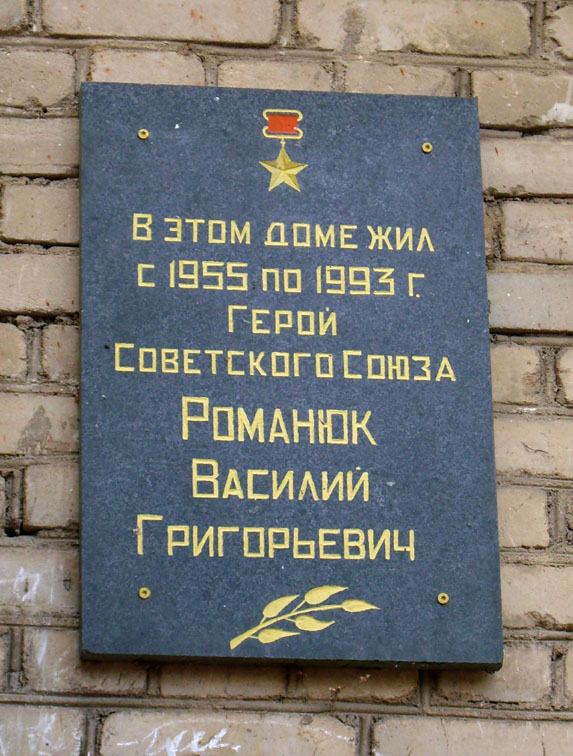 Романюк Василий Григорьевич – заместитель начальника отделения по лётным испытаниям и парашютной подготовке – старший инструктор-испытатель парашютов и катапультных установок Научно-исследовательского института ВВС СССР, полковник; первый среди парашютистов-испытателей, удостоенный звания Героя Советского Союза.