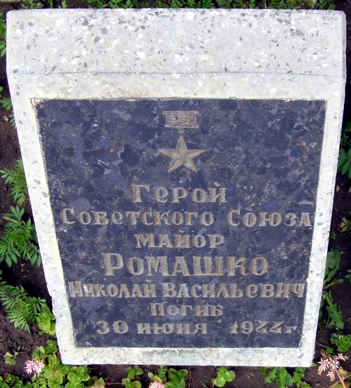 В критический момент боя заместитель командира полка по политической части Николай Ромашко заменил выбывшего из строя командира пулемётной роты, и лично пулемётным огнём уничтожил около двухсот гитлеровцев. Пал смертью храбрых в этом бою.