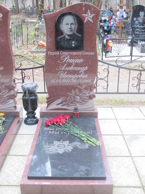 Товарищ Рощин – участник многих боев с немецкими захватчиками. В боях на Северо-Западном фронте за деревни Исаково, Холмы, Кириловщина, станцию Лычково показал образцы стойкости и мужества, за что награжден медалью «За отвагу». В боях на Харьковском и Полтавском направлениях товарищ Рощин не только умело давал телефонную связь с подразделениями, но и принимал активное участие в отражении контратак противника. В одном из боев за деревню Шаровка противник пытался просочиться в наши боевые порядки, отрезать командный пункт и захватить линию связи. Тов. Рощин с автоматом в руках бросился навстречу врагу и уничтожил группу в количестве 15 гитлеровцев. 1.10.1943 года лично сам изъявил желание дать телефонную связь через реку Днепр. План был хорошо продуман и осуществлен. Товарищ Рощин в числе первых переправился на правый берег Днепра и под сильным артиллерийско-минометным огнем и ружейно-пулеметным огнем противника установил телефонную связь сначала с десантной группой, а затем с батальоном в целом. Под сильным артиллерийско-минометным огнем противника линия связи неоднократно подвергалась обрывам, но, несмотря на это, тов. Рощин быстро восстанавливал связь и давал необходимые сведения о действиях противника и наших подразделений. За проявленный героизм, смелость и отвагу при форсировании реки Днепр, за самоотверженность в боях с немецко-фашистскими захватчиками товарищ Рощин представляется к высокой правительственной награде – званию Героя Советского Союза.