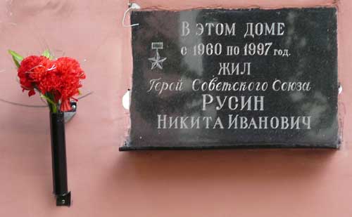 В память о Герое в Подольске установлена мемориальная доска на доме № 54 по улице Февральской, в котором он жил с 1960 по 1997 годы. Решением №39/9 от 26.04.2000 года Подольского городского совета депутатов школе №9 присвоено имя Героя Советского Союза Русина Никиты Ивановича.