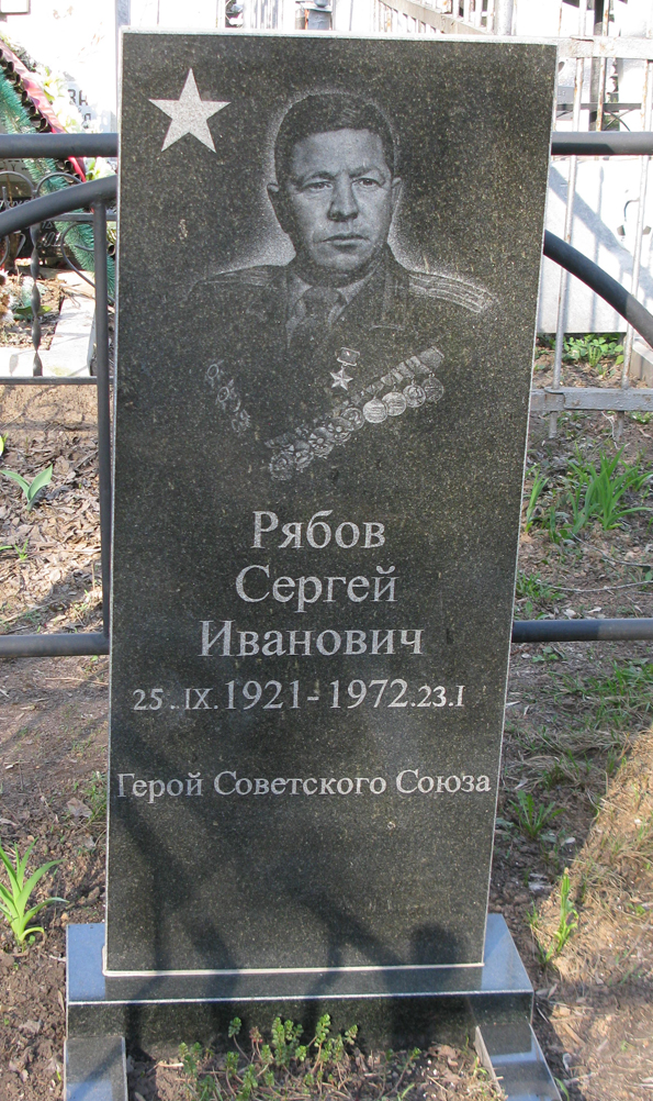Рябов Сергей Иванович - командир звена 92-го гвардейского штурмового авиационного полка 4-й гвардейской штурмовой авиационной дивизии 5-го штурмового авиационного корпуса 5-й воздушной армии 2-го Украинского фронта, гвардии старший лейтенант.