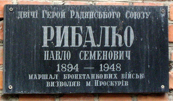Установлена в городе Хмельницкий (Украина) на доме №19 по улице маршала Рыбалко. Фото Станислава Выборова, 2008.