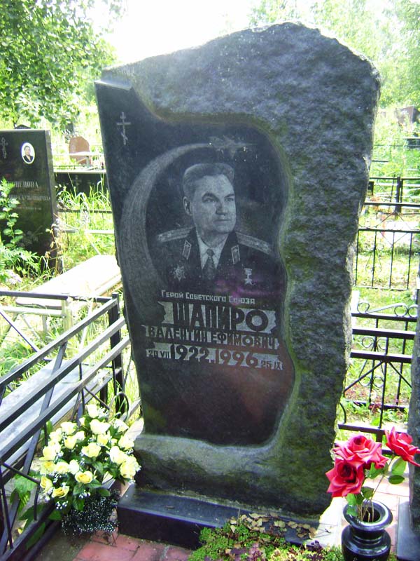 Шапиро Валентин Ефимович - командир звена 31-го гвардейского истребительного Никопольского Краснознаменного ордена Суворова авиационного полка 6-й гвардейской истребительной Донской-Сегедской Краснознаменной ордена Суворова авиационной дивизии 3-го гвардейского истребительного авиационного корпуса 5-й воздушной армии 2-го Украинского фронта, гвардии старший лейтенант.