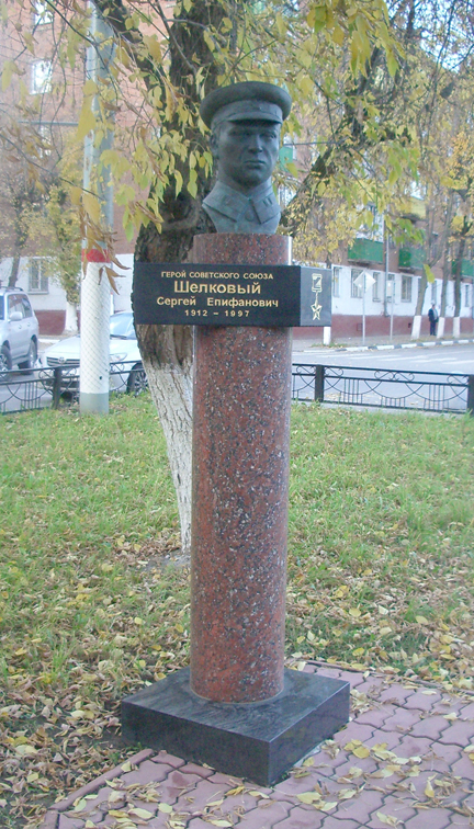 В городе Химки установлен бюст С.Е.Шелкового, а на доме, в котором он жил, – мемориальная доска.