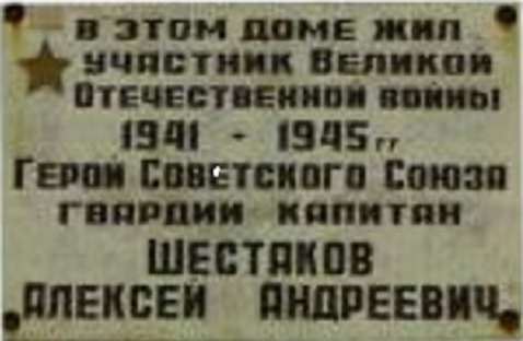 Шестаков Алексей Андреевич – командир роты 294-го гвардейского стрелкового полка (97-я гвардейская стрелковая Полтавская Краснознаменная ордена Суворова дивизия, 5-я гвардейская армия, 1-й Украинский фронт), гвардии старший лейтенант.