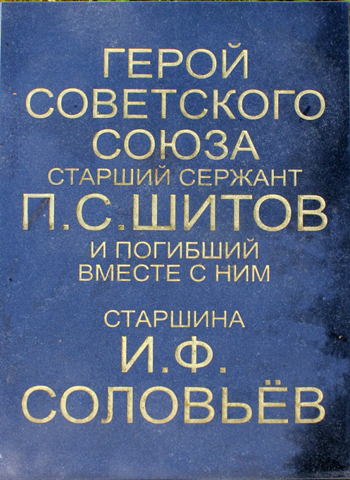31 января новый встречный бой у поселка Заречье (Кингисеппский район Ленинградской области). Замаскировав свою пушку в сарае на окраине поселка, расчет Шитова, поддерживая пехоту, геройски отражал многочисленные контратаки немцев. В живых остался лишь командир орудия, но будучи раненым, он продолжал стрелять. На помощь Шитову пришел командир взвода старший сержант Соловьёв. На позиции артиллеристов вышли три самоходных орудия гитлеровцев. Шитов и Соловьёв тотчас же открыли заградительный огонь. Одну из "самоходок" удалось подбить, но две продолжали двигаться и вести огонь зажигательными снарядами. От прямых попаданий сарай загорелся. Но Шитов и Соловьёв не отходили от своей пушки, продолжали вести огонь до последнего снаряда.