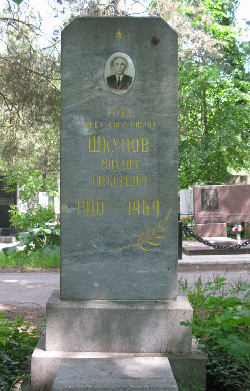 Вскоре после этих боев М.А. Шкунов получил звание полковника и был назначен на должность заместителя командира 42-й дивизии. 17 марта 1944 года в ожесточенном сражении под Винницей он был тяжело ранен. Лишенный способности двигаться, Шкунов продолжал руководить подчиненными частями до выполнения боевой задачи.