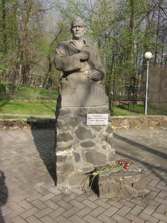 Обелиск с бронзовыми барельефами Лизы, Зины, Сережи и Миши Шмырёвых установлен на территории Суражской средней школы.