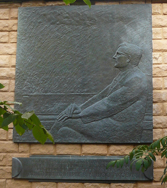 Установлена в Санкт-Петербурге на доме, где жил Д.Д.Шостакович (улица Марата, 9). Открыта в 2006 году. Фото Алексея Пиголицына (г. Санкт-Петербург), 2011.