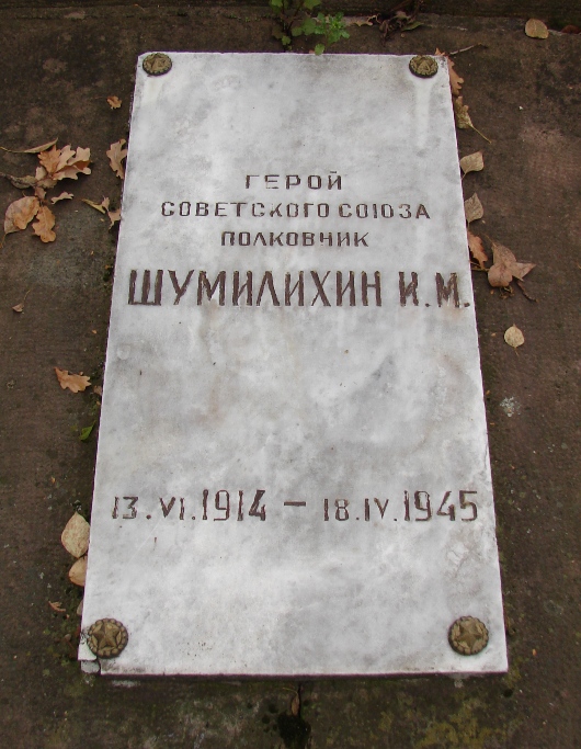 18 апреля 1945 года отважный артиллерист полковник Иван Михайлович Шумилихин погиб в бою. Похоронен в городе Львов на холме Славы.