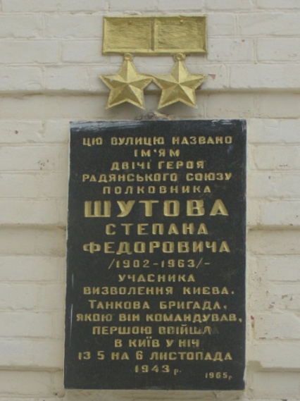 Шутов Степан Фёдорович - командир 20-й гвардейской танковой бригады 5-го гвардейского танкового корпуса 38-й армии 1-го Украинского фронта; командир 20-й гвардейской танковой бригады 5-го гвардейского танкового корпуса 6-й танковой армии 2-го Украинского фронта, гвардии полковник.
