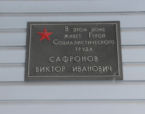 На доме где живет В.И. Сафронов, установлена памятная доска.