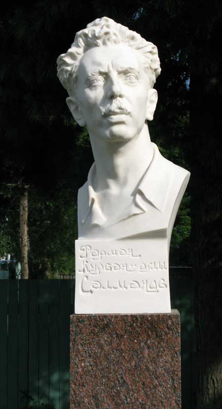 В городе Ханты-Мансийск перед входом в музей геологии, нефти и газа. Авторы: архитектор Д. Кадиров, сульпторы С. Самедов, А. Ибадуллаев. Фото Алексея Шабанова. 19.06.2011 г.