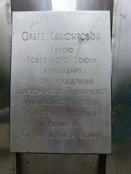 Санфирова Ольга Александровна - командир эскадрильи 46-го гвардейского Таманского Краснознамённого ордена Суворова ночного бомбардировочного авиационного полка 325-й Осовецкой Краснознамённой ордена Суворова ночной бомбардировочной авиационной дивизии 4-й воздушной армии 2-го Белорусского фронта, гвардии капитан.