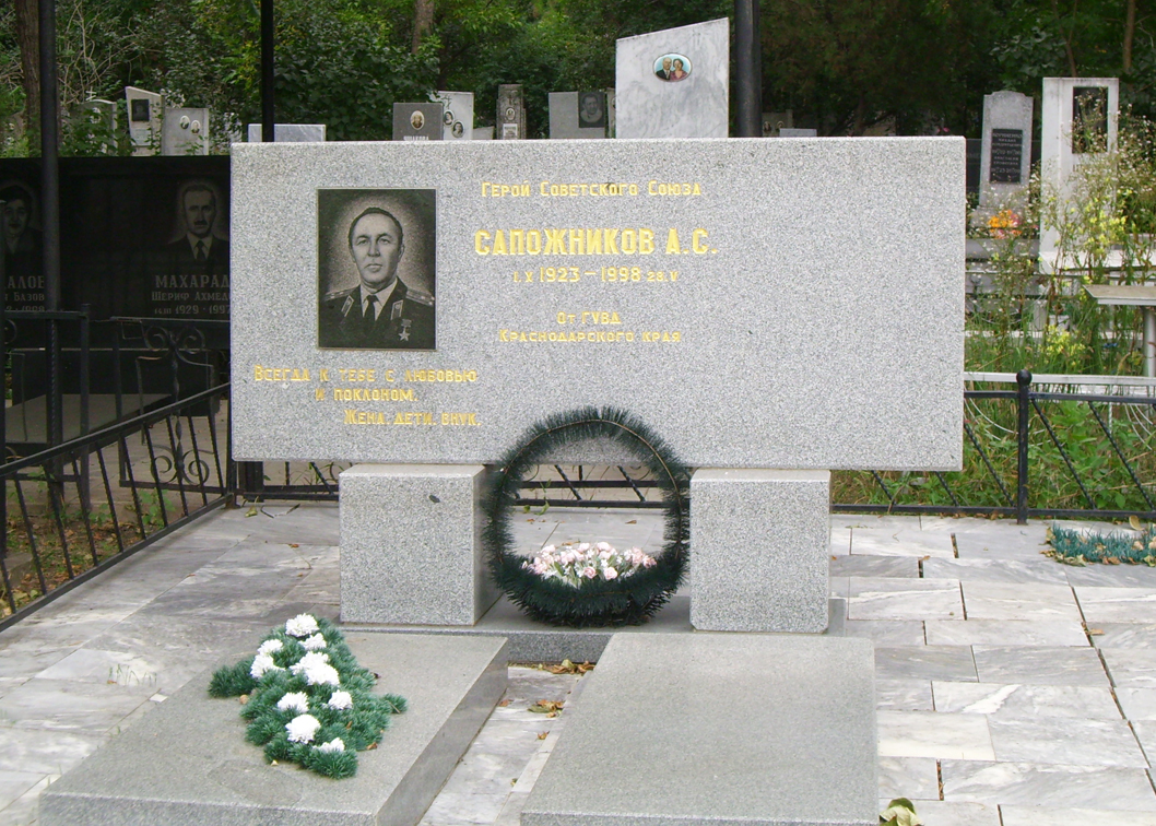 С 1980 года полковник А.С.Сапожников – снова в запасе. Жил в городе Краснодар. Умер 28 мая 1998 года. Похоронен на Славянском кладбище в Краснодаре.