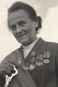 В годы войны, не успев эвакуироваться с больной матерью и маленьким сыном, вынуждена остаться в оккупированном Калинине, прятаться. Сразу после освобождения города принимала участие в восстановлении ткацкой фабрики. В тяжелейших условиях выпускала полотно для солдатских рубашек и марлю для бинтов.
