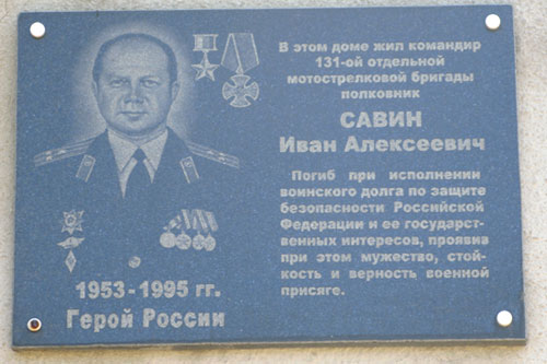 7 сентября 2005 года в Майкопе на мемориале воинов, погибших в локальных конфликтах, состоялся траурный митинг. Он был посвящен посмертному вручению Звезды Героя командиру 131-й мотострелковой бригады полковнику Ивану Савину, отдавшему жизнь при штурме Грозного 10 лет назад. Награда была передана вдове офицера, Валентине Савиной.